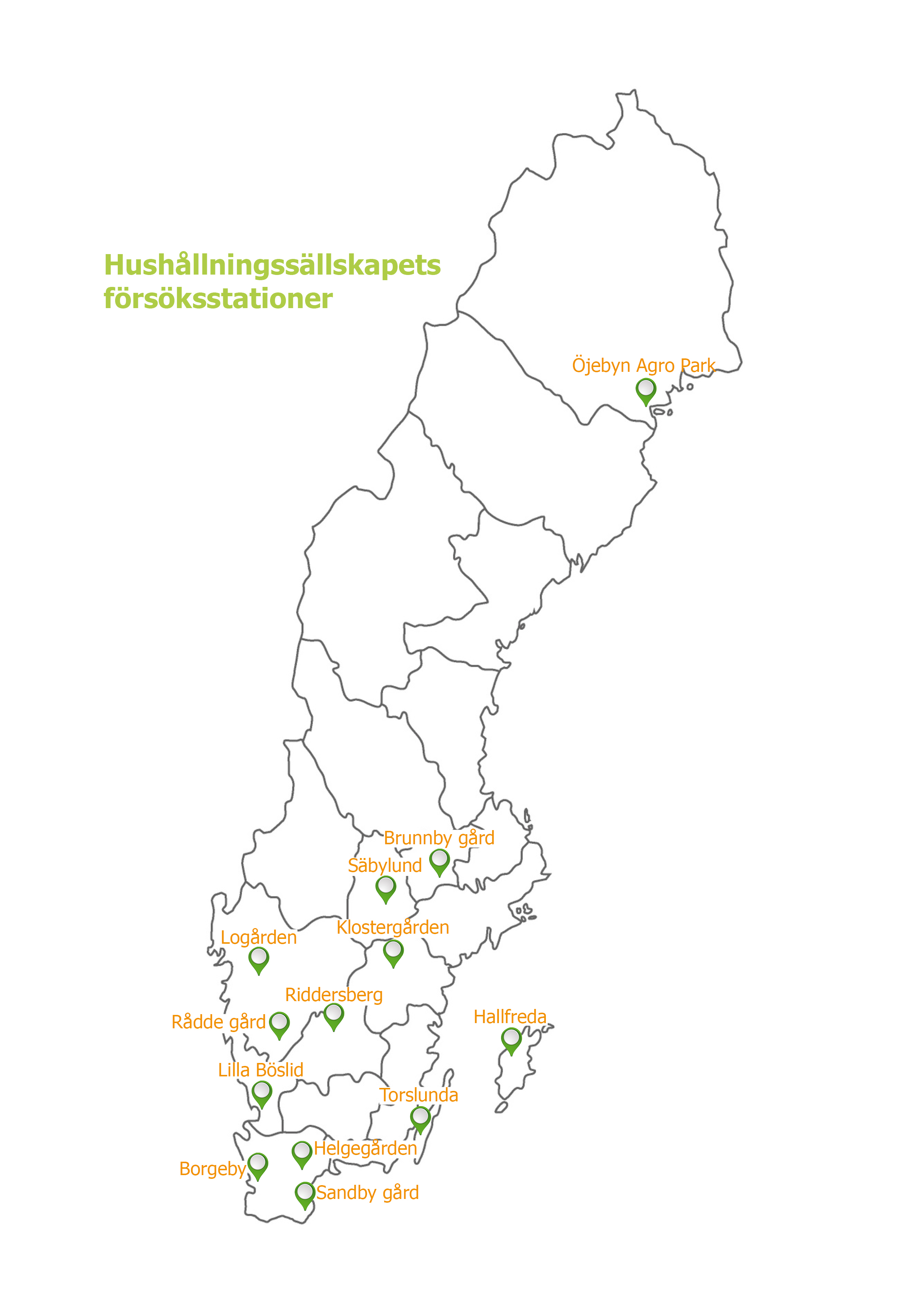 Vi utgår från två försöksstationer placerade på Brunnby gård som ligger strax utanför Västerås och Säbylund som är belägen mellan Kumla och Örebro. Från dessa två orter täcker vi upp en stor geografisk yta som sträcker sig runt Mälar- Hjälmardalen och upp till Hälsingland.